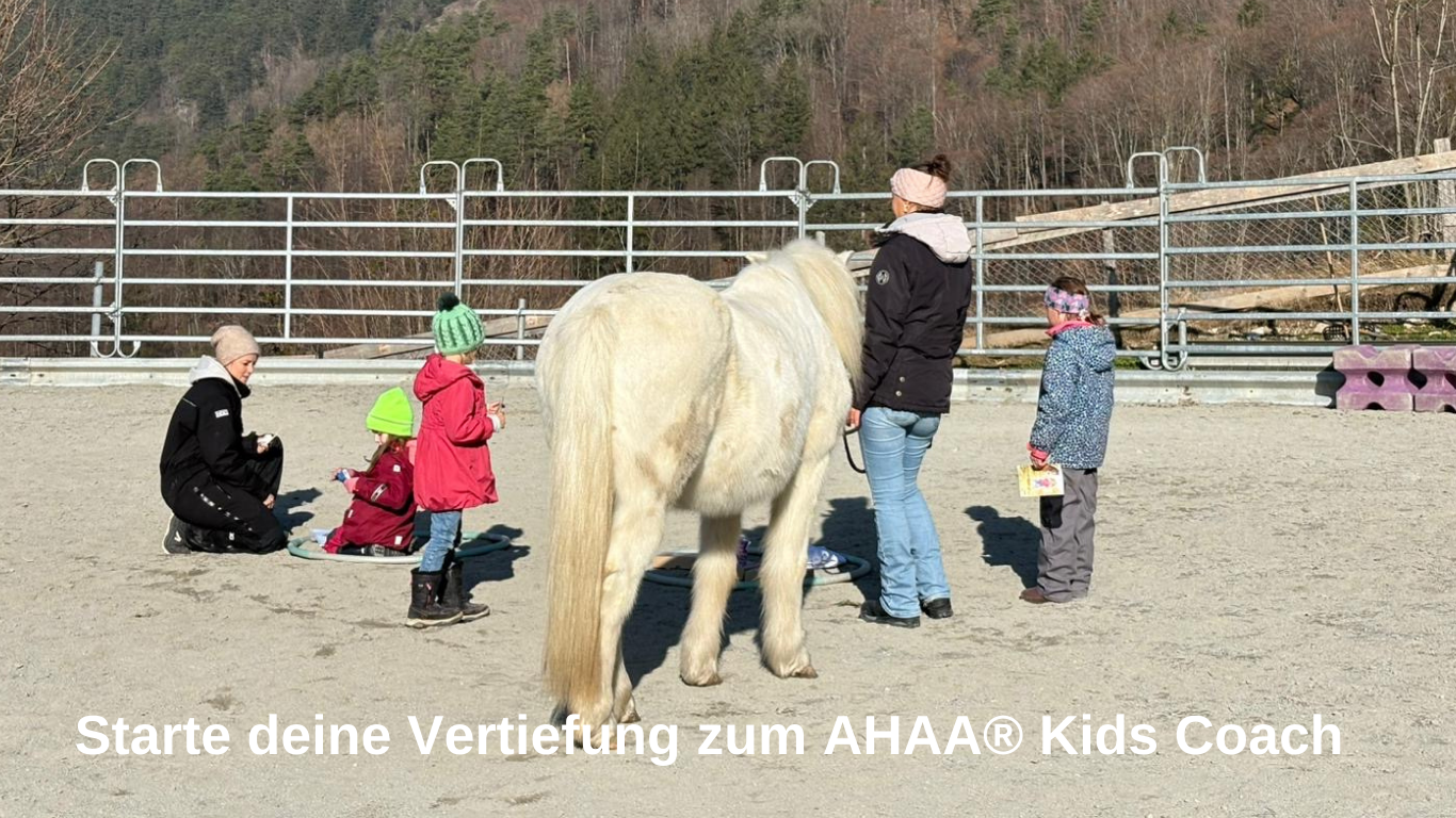 Entdecke die wirkungsvolle Verbindung von Struktur, Beziehung und pferdegestützter Begleitung in unserer zertifizierten Weiterbildung AHAA® Kids Coach.